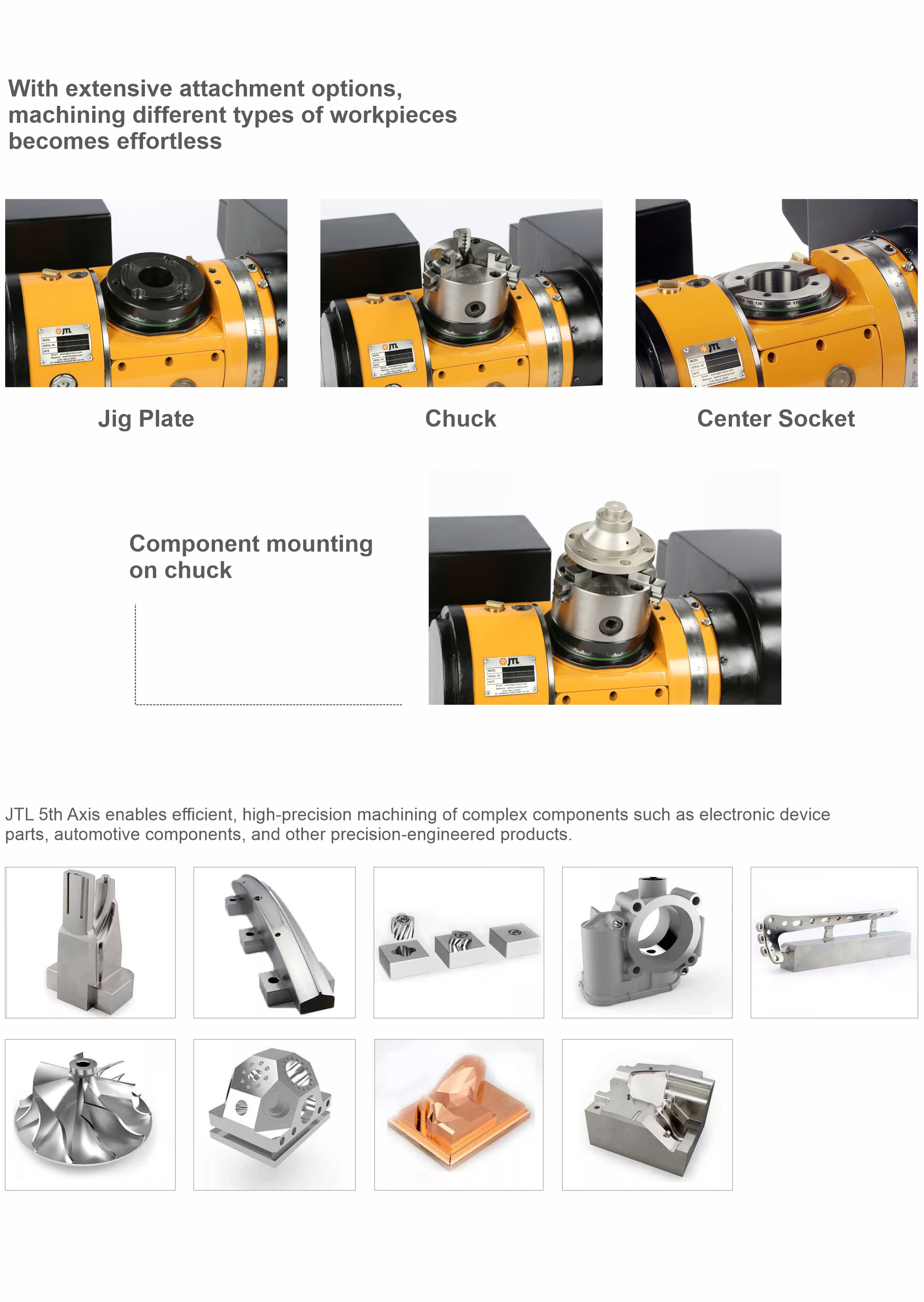 The JRT-5AX Series unlocks the power of true 5-axis machining for complex and high-precision applications. Designed to overcome the limitations of traditional setups, these rotary tables enable multi-sided machining, intricate geometries, and faster cycle times-all in a single setup.
